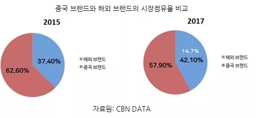 2017年海外品牌产品在婴幼儿护肤品市场的占有率为42.1%,较2015年(37.4%)增长4.7%。中国化妆品进口规模连续三年增长,最近韩国打败法国成为第一进口对象国。